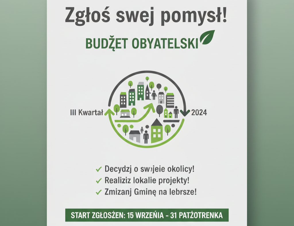 Rozpoczęto nabór projektów do budżetu obywatelskiego. Mieszkańcy mogą zgłaszać swoje pomysły do 10 stycznia. Regulamin oraz formularz zgłoszeniowy znajdują się na stronie gminy.