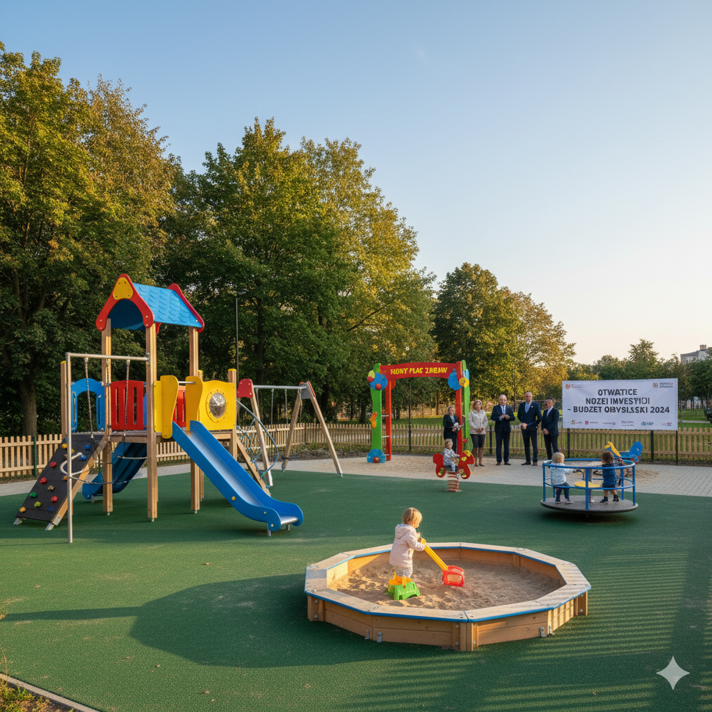 Zakończono budowę nowego placu zabaw. Obiekt został wyposażony w bezpieczną nawierzchnię i urządzenia dostosowane do potrzeb dzieci w różnym wieku.